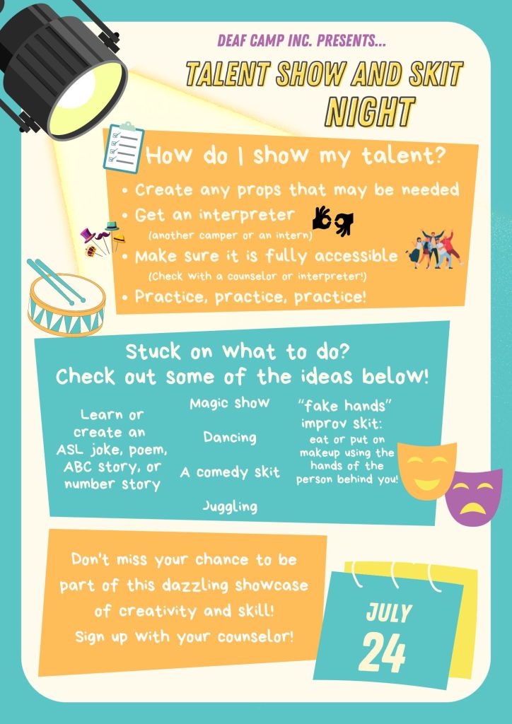 Learn the signs for talent, sing, dance, audience, comedy, performance